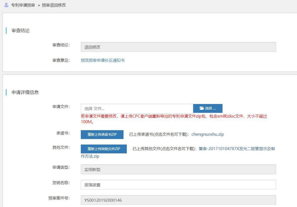 点击“修改”,进入专利申请预审修改界面,如下图所示: