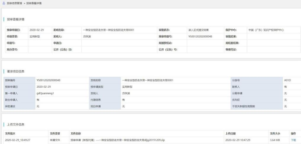 图 1- 49 专利预审提交正式申请结果查看详情